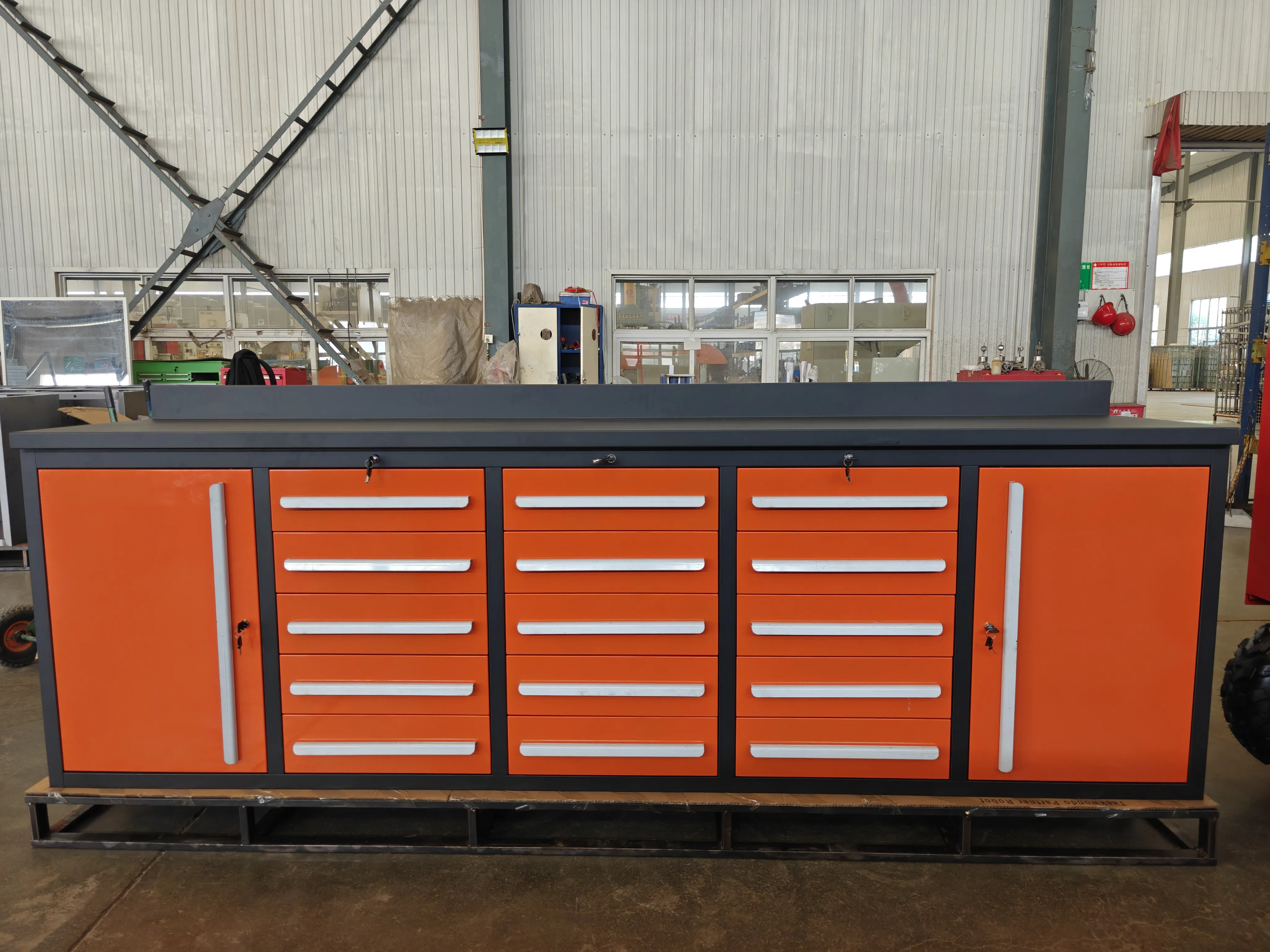 Toppen af kabinettet kan udstyres med grøn stribet gummi, kantning, tegnebræt, bevægelig bagskuffe, firkanthul hængende plade eller louver hængende bord for at udvide værktøjskabinets funktion.